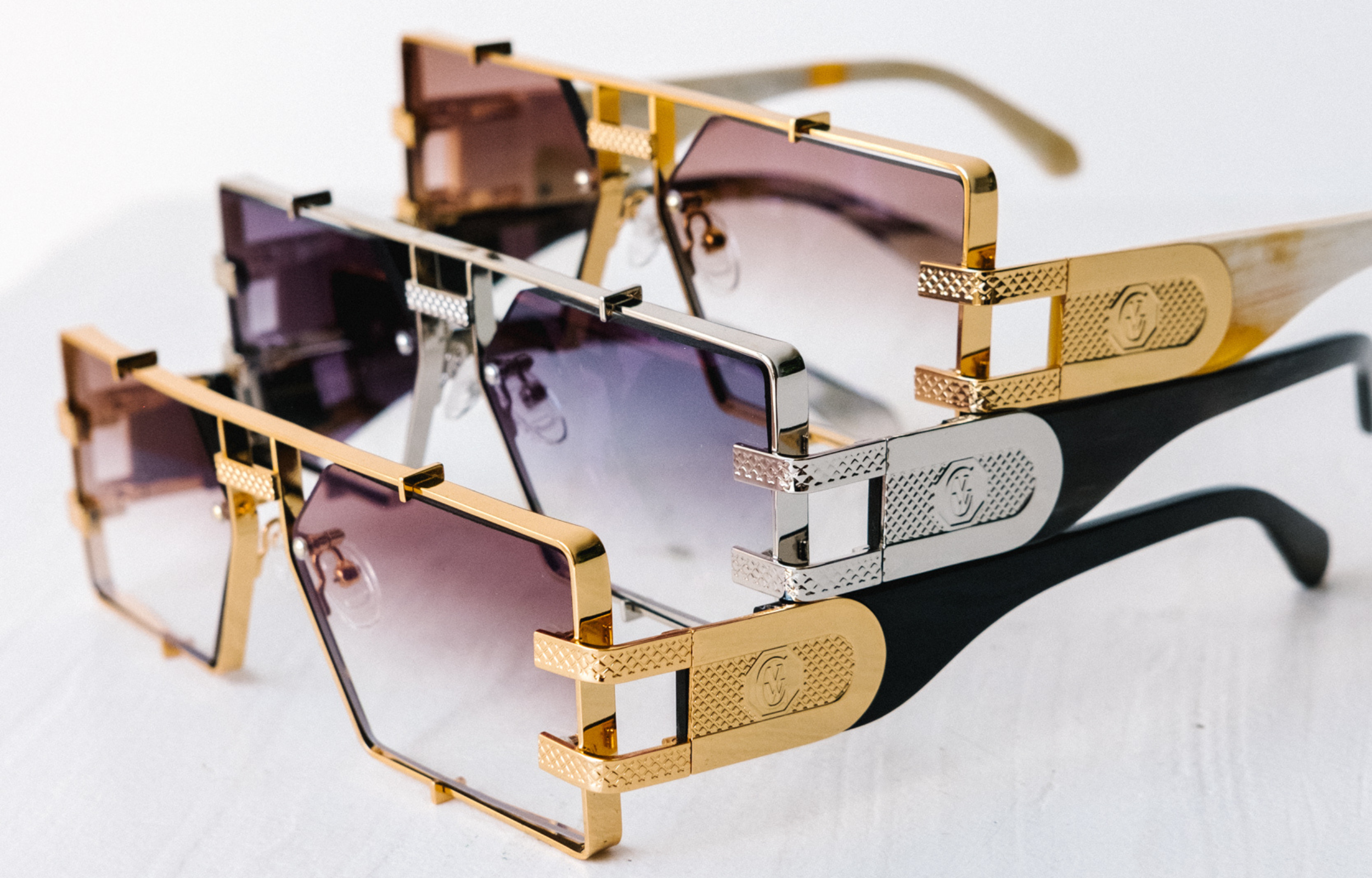 BRIGADE #6 18KT Gold Swarovski Black Wood Sunglasses