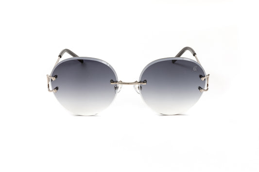 CLASSIC C Silver Sunglasses, Gradient Dark Grey Round Lenses