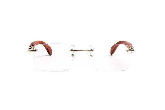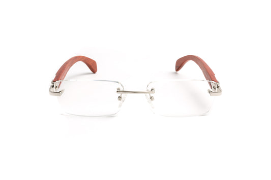 Silver & Brown Wood Rimless Eyeglasses, Rectangular Clear Lenses