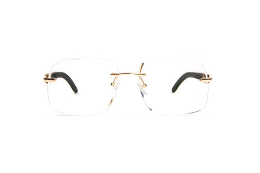 18KT Gold & Brown Wood Eyeglasses, Clear Square Bevel Lenses
