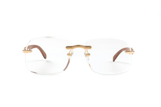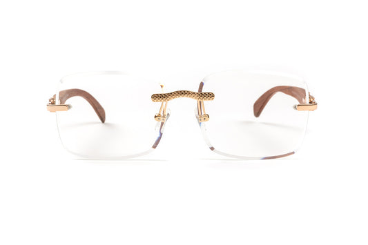 Silver & Brown Wood Rimless Eyeglasses, Square Clear Lenses