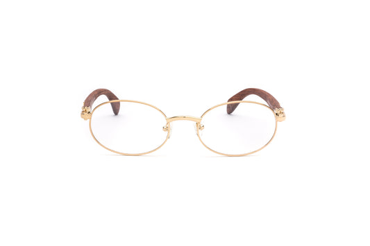 18KT Gold & Wood Eyeglasses, Clear Oval Lenses