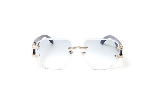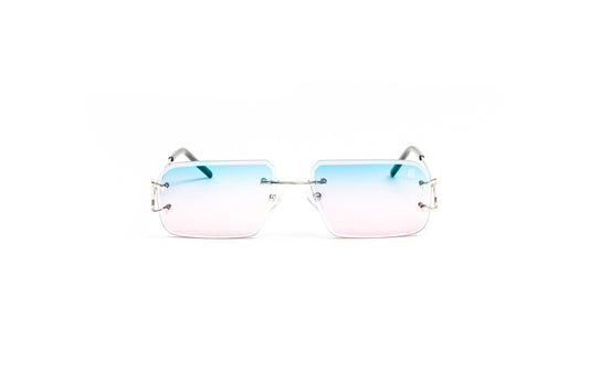 VWC Classic C Sunglasses, Rimless Silver Frame, Blue Pink Double Gradient Tint Lenses