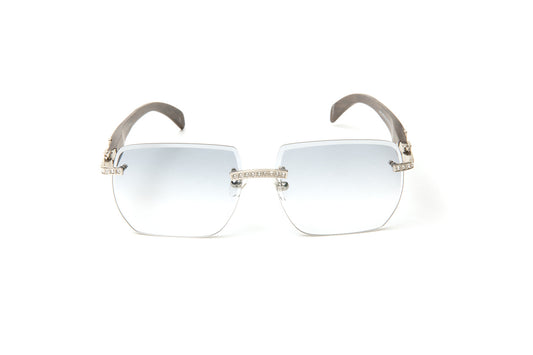 CLASSIC C Silver Rimless Sunglasses, Gradient Grey Square Lenses
