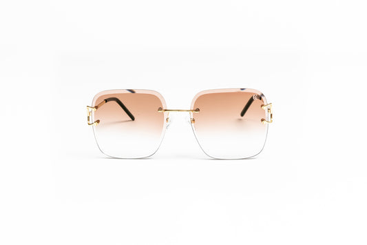 CLASSIC C 18KT Gold Rimless Sunglasses, Gradient Brown Square Lenses