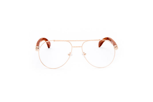 VWC Wood Aviator Eyeglasses, Gold Frames, Clear Lenses