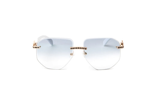 VENDOME 24KT Gold & White Buffalo Horn Sunglasses, Gradient Brown Square Lenses
