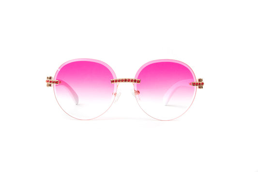 SANTOS Silver & Blue/Pink Acetate Sunglasses, Gradient Brown Round Lenses