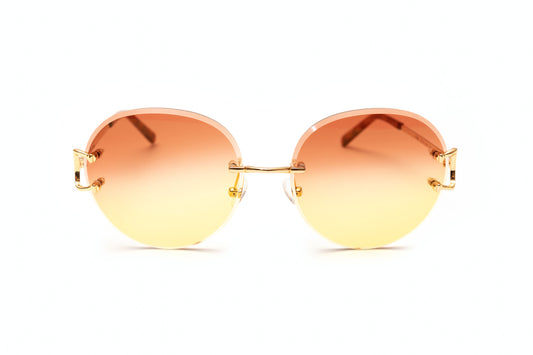 CLASSIC C 18KT Gold Rimless Sunglasses, Double Gradient Brown/Yellow Lenses