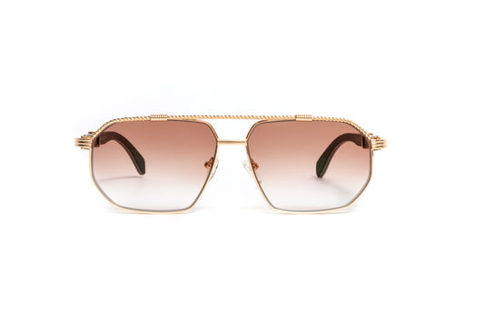BRIGADE #1 18KT Gold Brown Wood Sunglasses