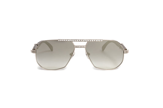 BRIGADE #6 Silver Swarovski Grey Wood Sunglasses