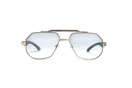 BRIGADE Silver & Grey Wood Navigator Sunglasses, Gradient Grey + Silver Mirror Lenses