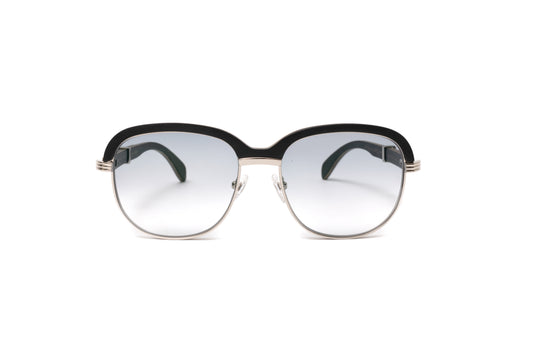 HIGH ROLLER 1 Silver & Black Wood Sunglasses, Gradient Grey Lenses