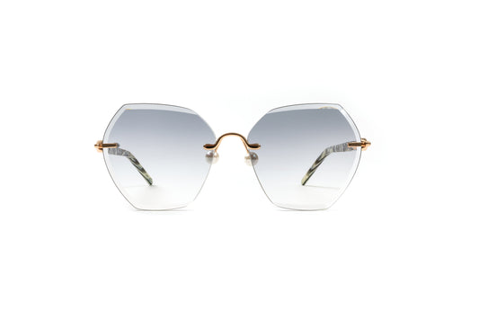 PEARL COLLECTION 18KT Gold & Brown/Blue Acetate Sunglasses, Gradient Grey Hexagon Lenses
