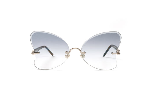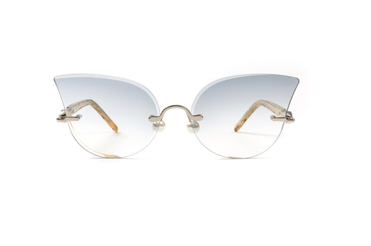PEARL COLLECTION Silver & Brown/Blue Acetate Sunglasses, Gradient Grey Butterfly Lenses