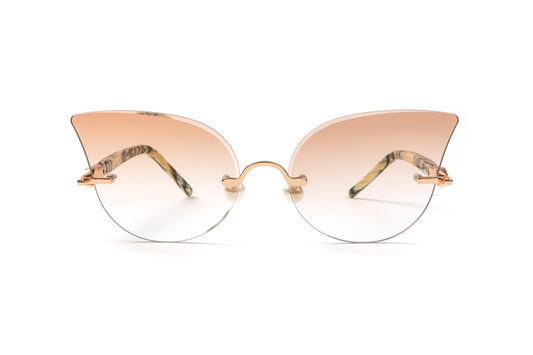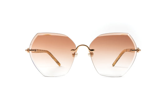 Rimless 18KT Gold & White Buffalo Horn Sunglasses, Gradient Brown Anti Reflective Lenses