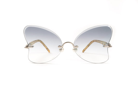 PEARL COLLECTION Silver & Tortoise Acetate Sunglasses, Gradient Grey Butterfly Lenses