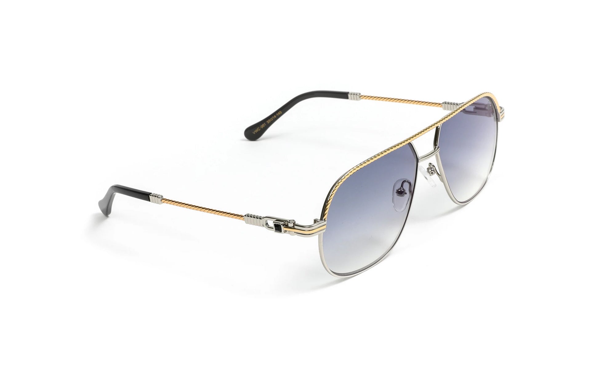18KT Gold & Silver Rope Aviator Sunglasses, Gradient Grey Lenses