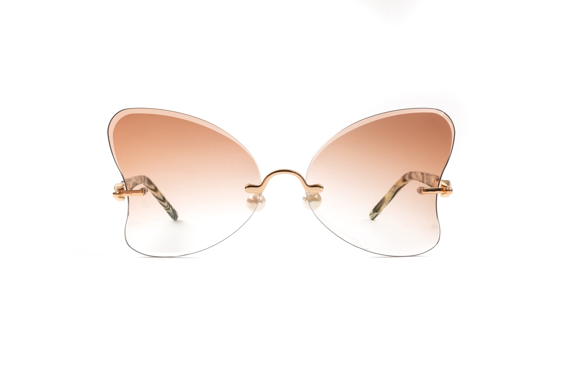 PEARL COLLECTION 18KT Gold & White/Black Acetate Sunglasses, Gradient Brown Butterfly Lenses